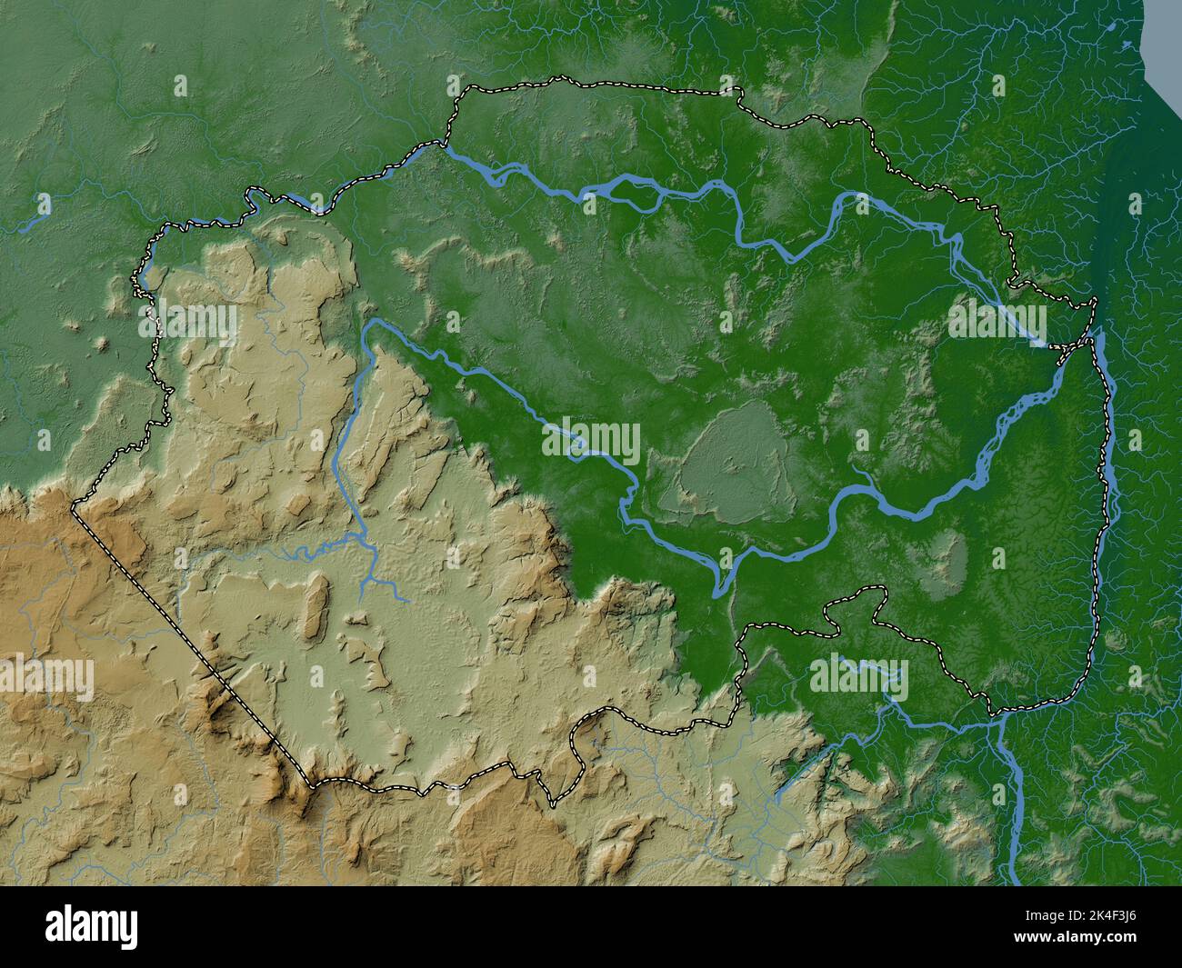 Cuyuni Mazaruni, region of Guyana. Colored elevation map with