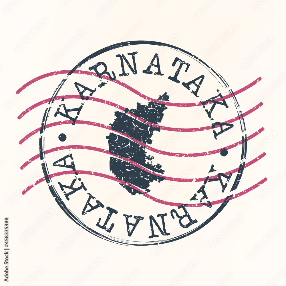 Karnataka, India Stamp Map Postal. Silhouette. Passport Round