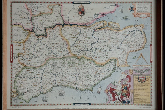 Saxton’s Map of Kent Sussex Surrey and Middlesex 1575 | BADA