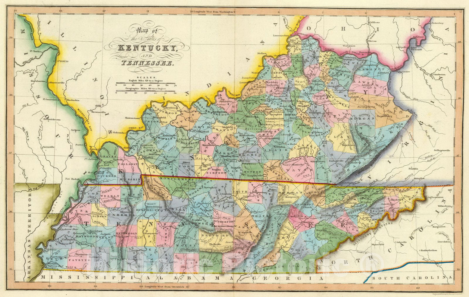 Historic Map : Kentucky, Tennessee. 1831 Vintage Wall Art