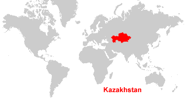 A map of Kazakhstan and nearby regions of Russia. The red oval